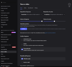 - Controlla il microfono: **Impostazioni utente → Voce e video → Test microfono**.
